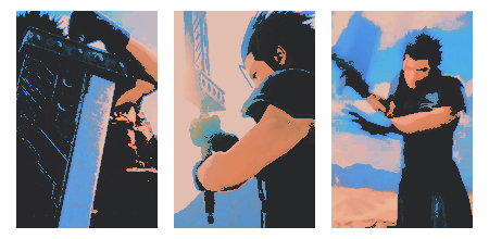 Wardrobe: Zack’s wardrobe consists of different variations of the standard SOLDIER uniform. No longer a part of SOLDIER, what he wears as a merc shows a similarity to his previous uniform just with Zack’s own added flair. He’s a man of SIMPLICITY when it comes to clothing, && while he aims to distance himself from ShinRa he’s worn the same uniform since childhood. No longer a SOLDIER, The branded SOLDIER belt is discarded, turtle neck sleeveless jumpers are switched for more casual t-shirts.